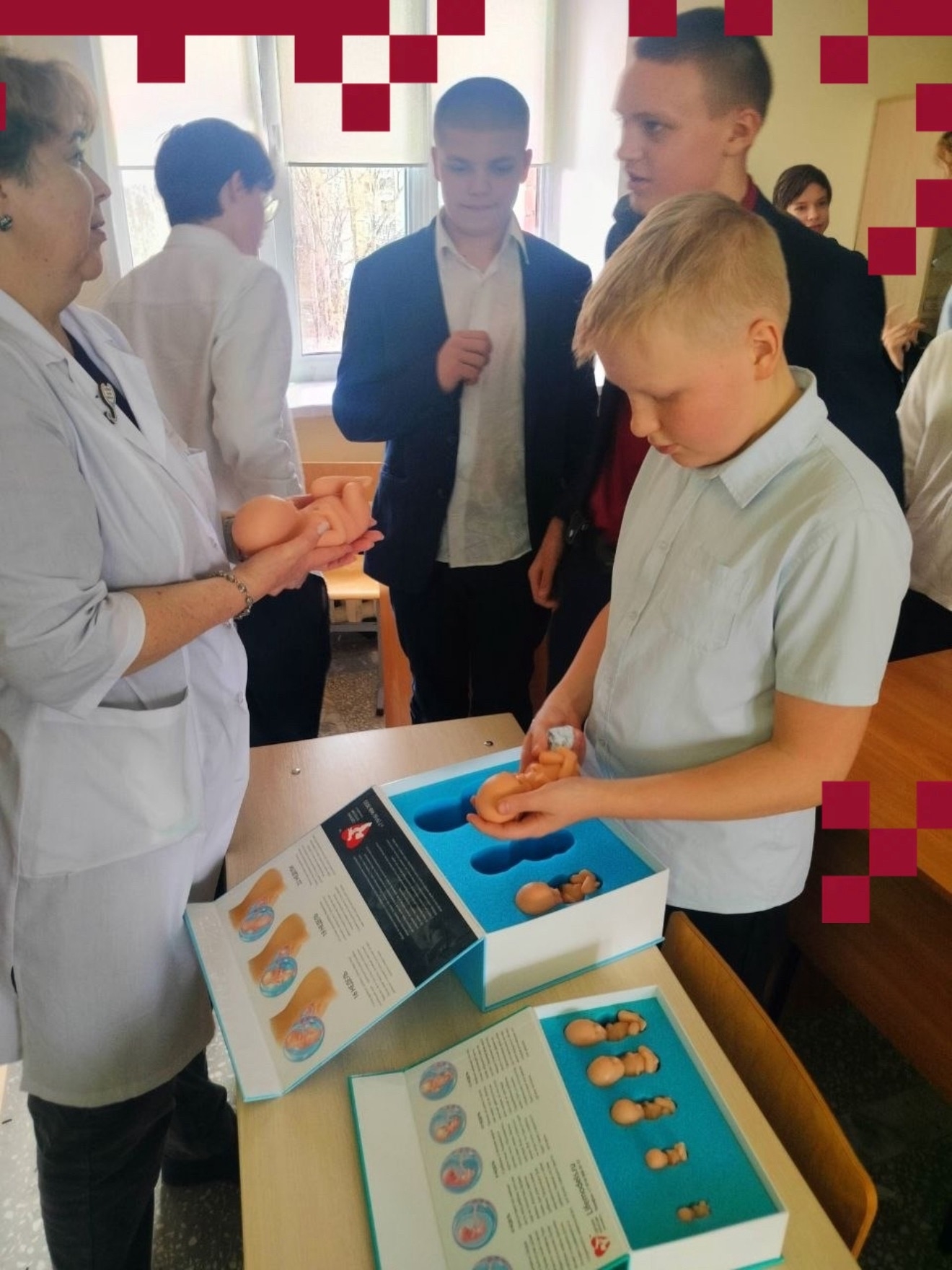 Юные гости также познакомились с нынешними преподавателями-учёными кафедры и сферой их научных интересов. Учебный процесс, проходящий в стенах кафедры, вызвал у семиклассников неподдельный интерес. А наибольший восторг и умиление у ребят, безусловно, вызвали муляжи плодов и новорождённых — наглядные пособия, которые помогают студентам постигать азы неонатологии и педиатрии.