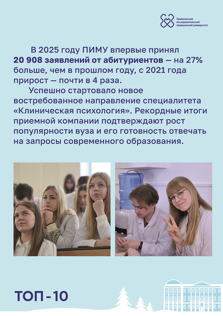 2025 год для ПИМУ был насыщен событиями и прорывными достижениями. Мы выбрали самые значимые — те, которыми особенно гордимся. О каждом из них — в нашей специальной подборке.