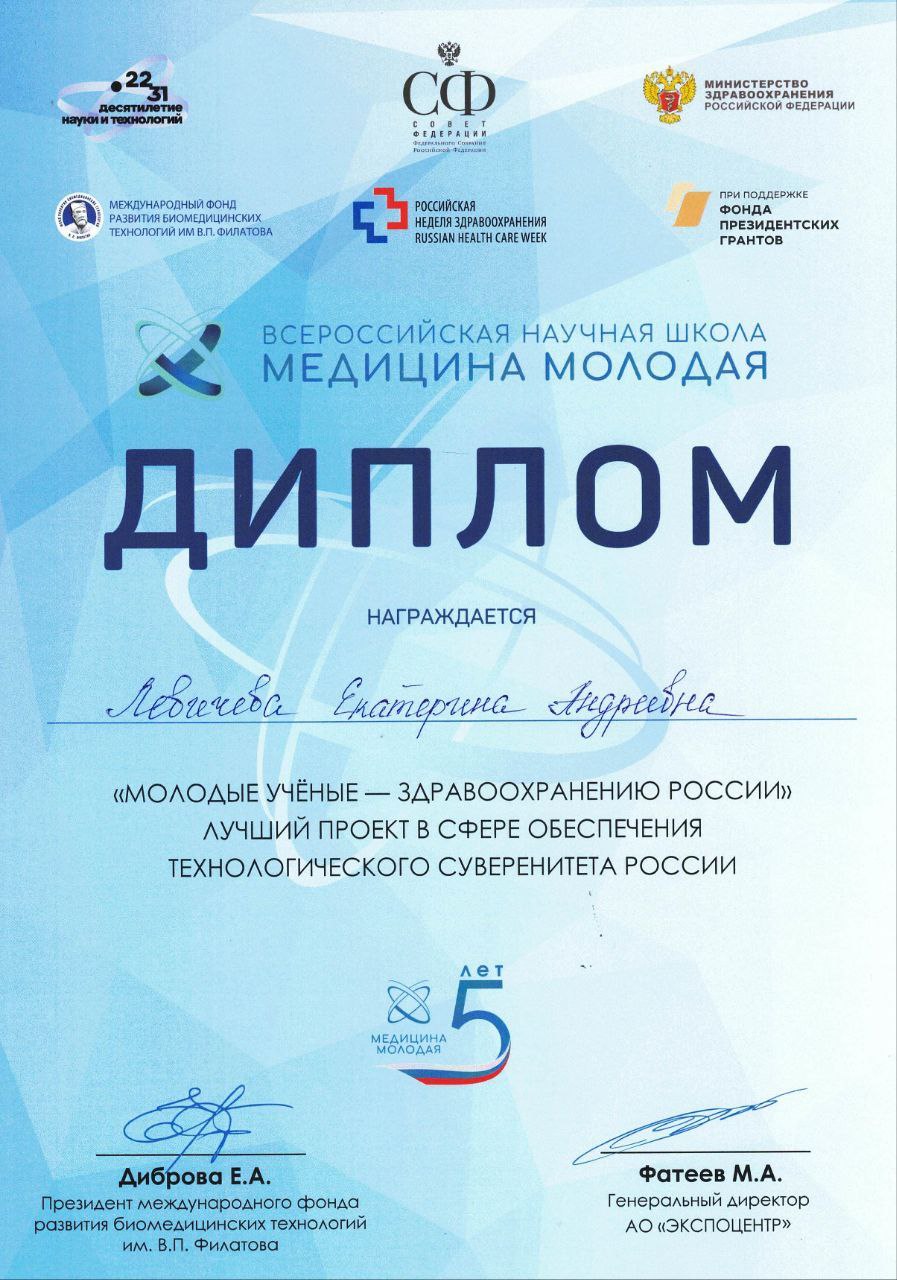 Форум «МЕДИЦИНА МОЛОДАЯ» – флагманский проект поддержки молодых ученых-медиков, организованный Фондом им. В.П. Филатова при поддержке Совета Федерации, Минздрава и Минобрнауки России. Победа Екатерины Левичевой подтверждает высокий уровень научных исследований, проводимых в стенах ПИМУ, и открывает новые перспективы для внедрения университетских разработок в современную медицину.