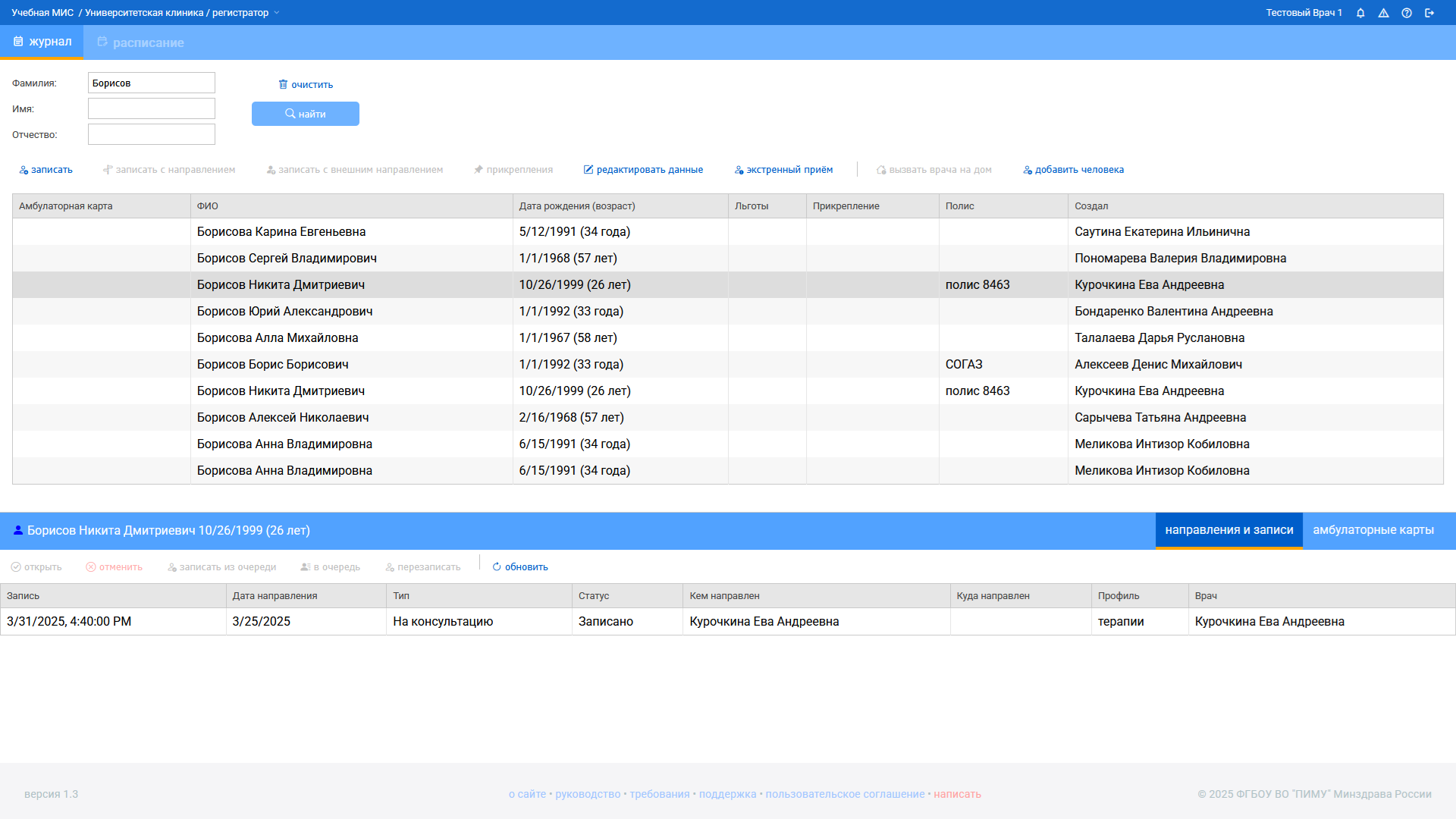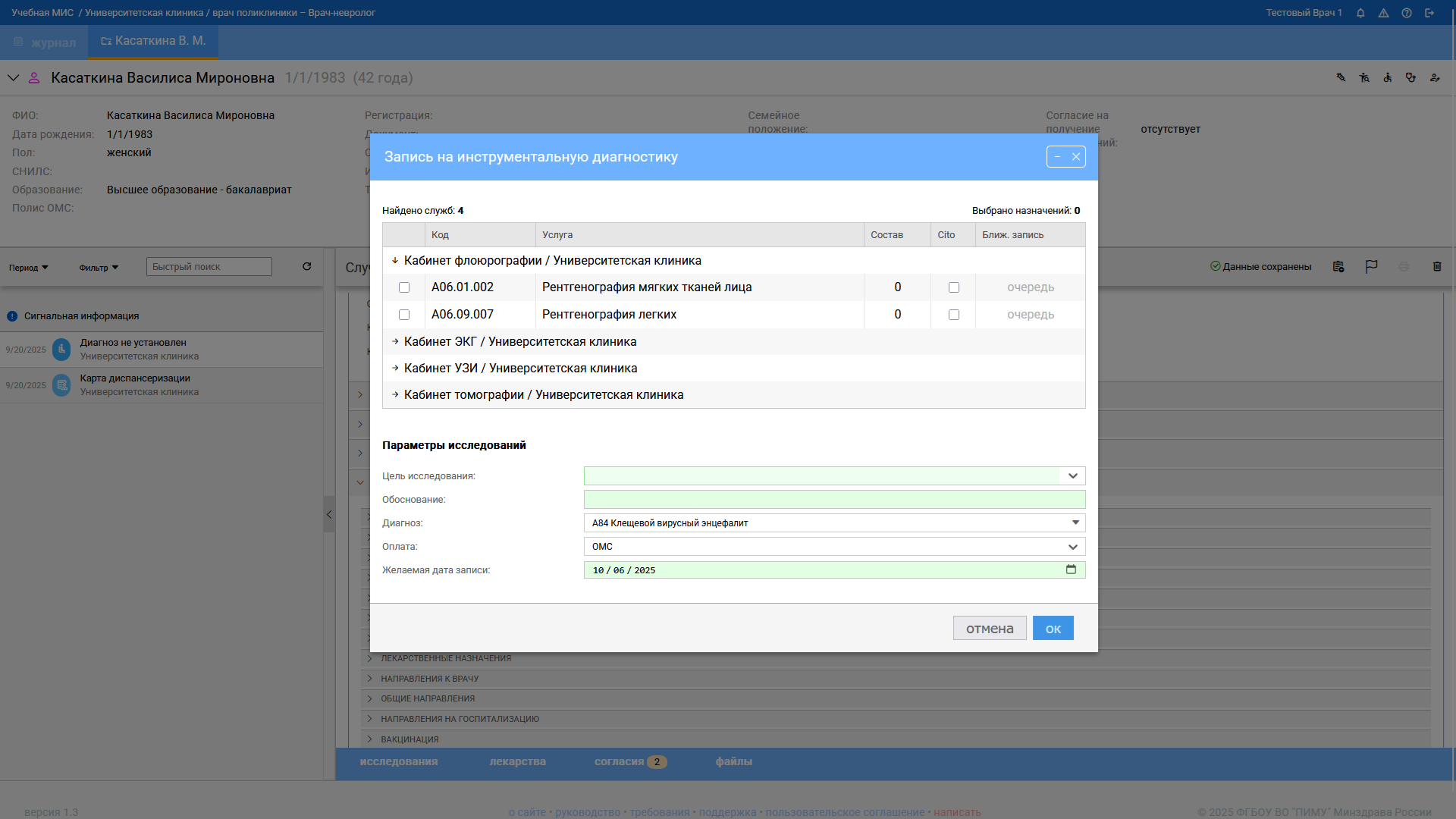 Веб приложение «УМИС» — практический тренажёр для формирования у студентов навыков работы с медицинской информационной системой в условиях, максимально приближенных к реальной клинической практике.