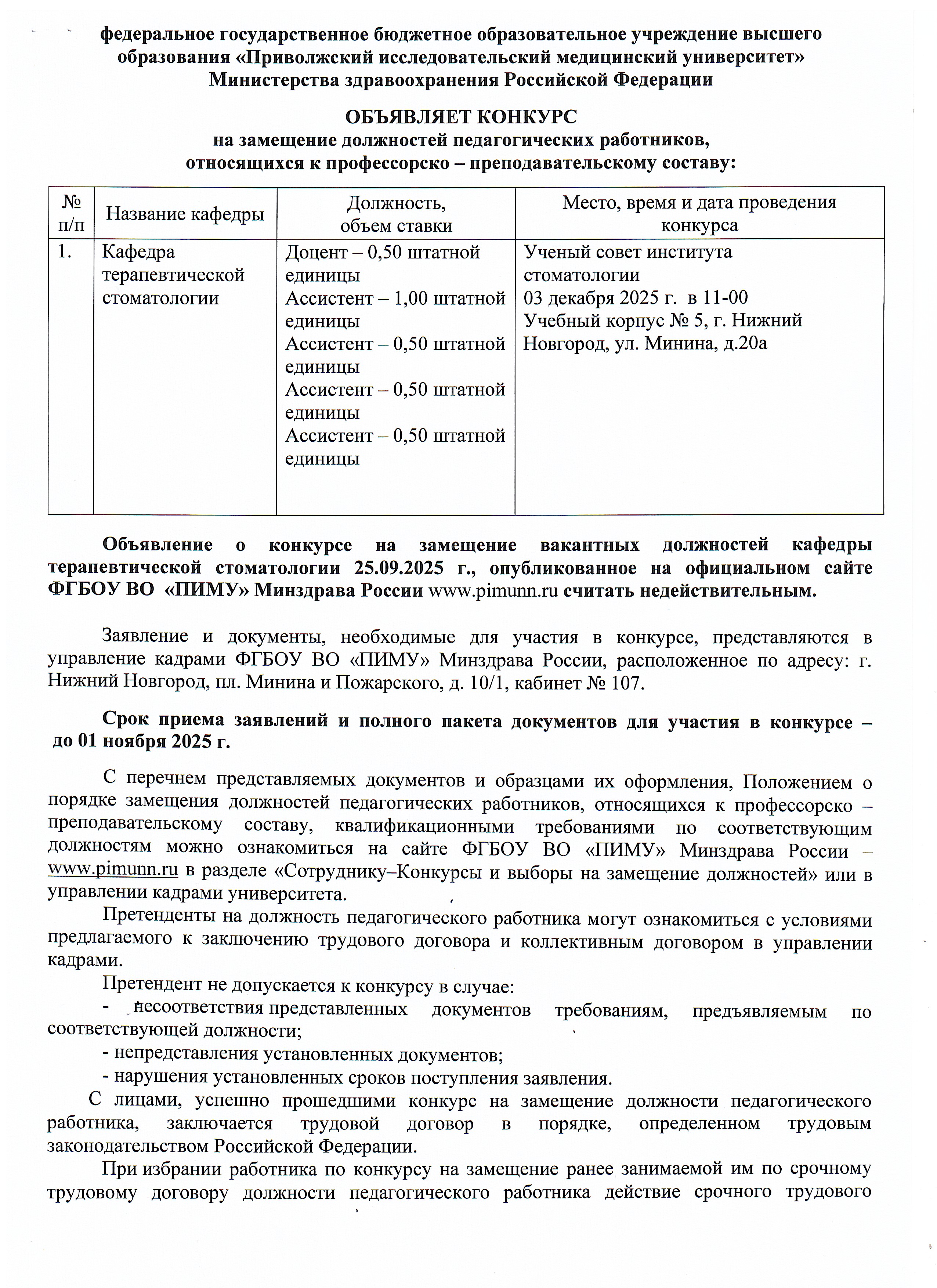 - Объявление о проведении конкурса (кафедра нормальной физиологии им. Н.Ю. Беленкова) 24.11.2025