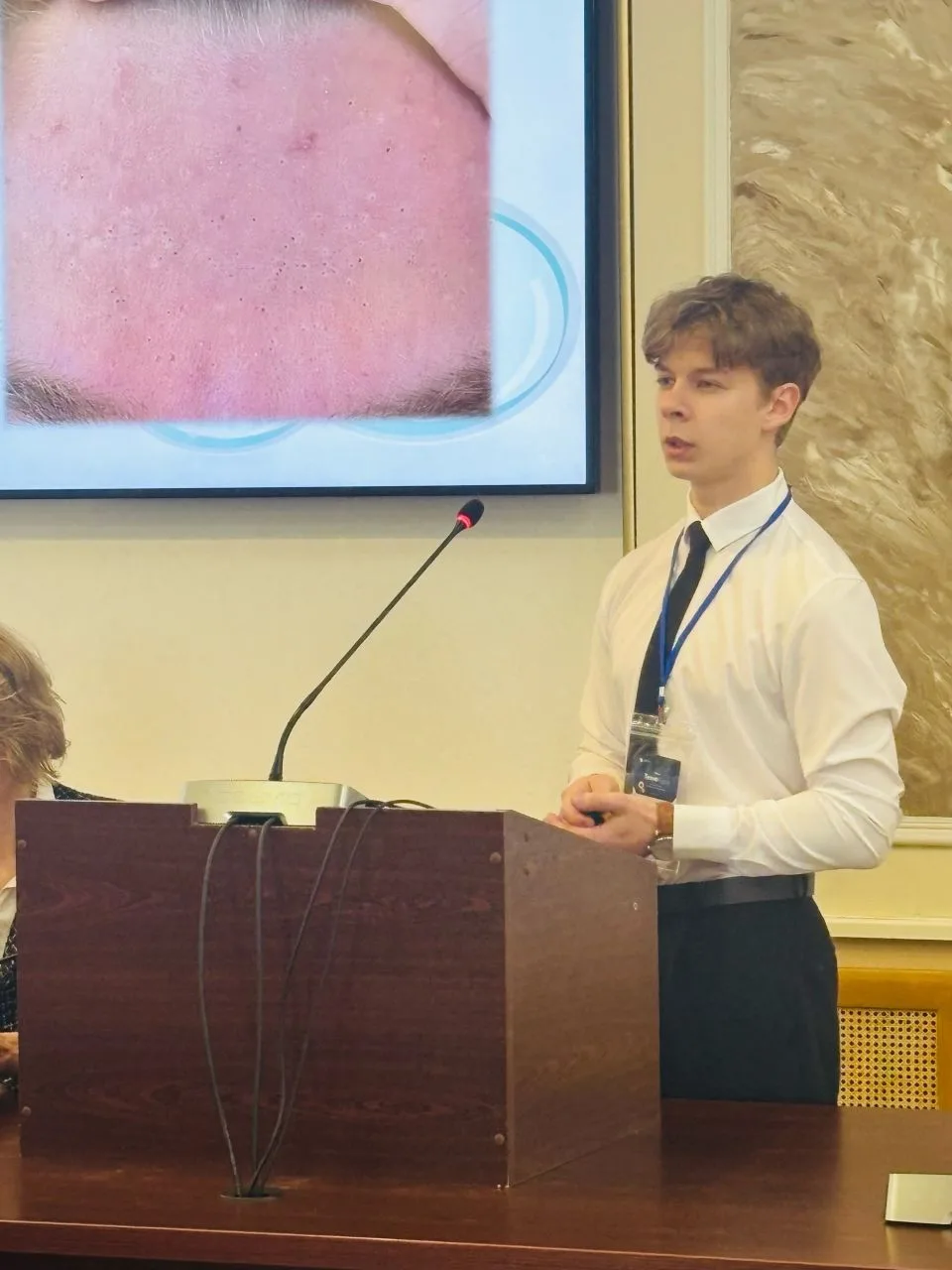 Честь Приволжского исследовательского медицинского университета отстаивал студент Булычев Арсений Максимович. На суд жюри он представил проект, посвященный актуальной проблеме дерматологии: