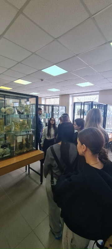 В музее нормальной анатомии сотрудники Самоделкина Анастасия Александровна и Лиходей Анастасия Андреевна познакомили гостей с экспозицией, которая включает анатомические препараты, модели органов и современные учебные материалы. Студенты узнали: