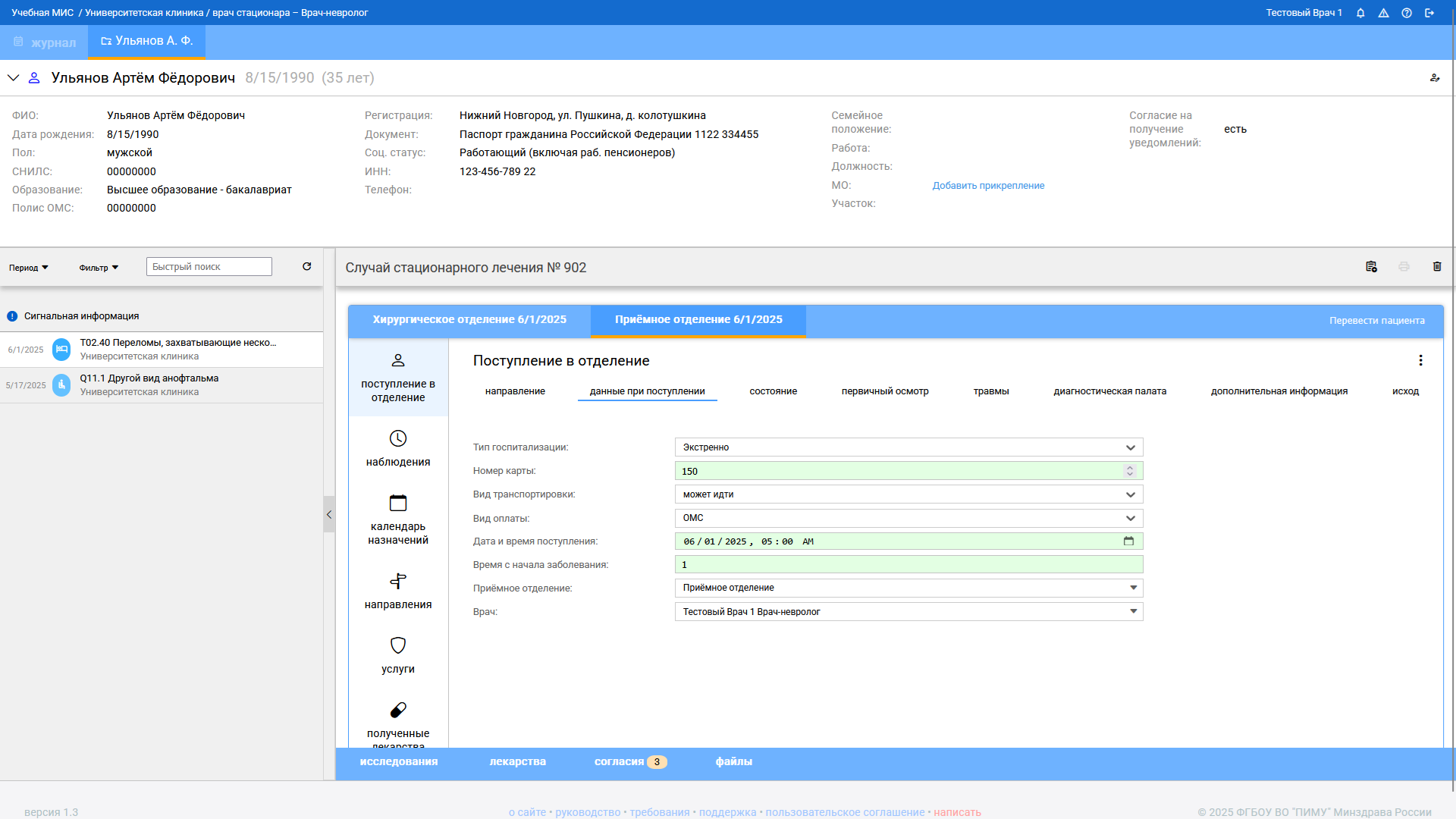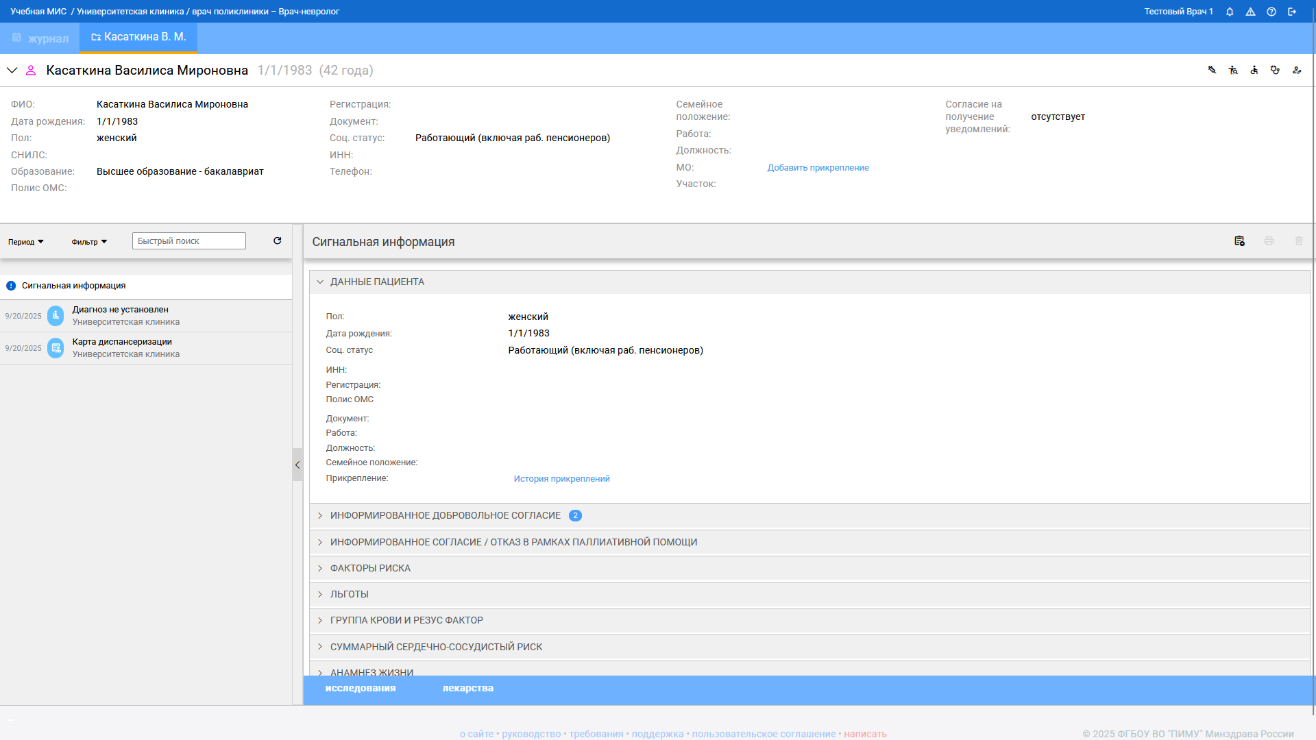 Система поддерживает смену ролей (врач поликлиники, регистратор, врач стационара, врачи лабораторной и инструментальной диагностики), что позволяет отрабатывать межпрофессиональное взаимодействие и последовательность клинических процессов.